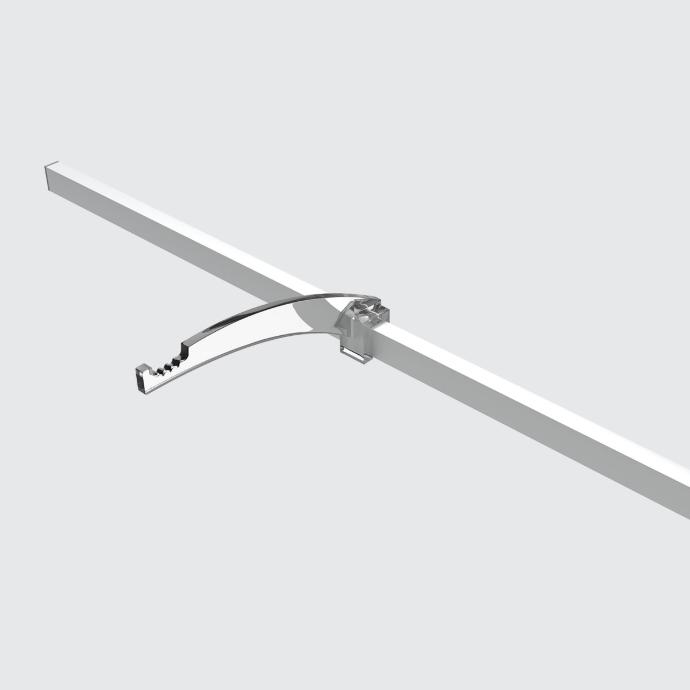Una barra sencilla de aluminio sirve como soporte para las patillas de las gafas y puede incluir iluminación LED. Se corta fácilmente a las dimensiones deseadas y se instala sin dificultad en distintas superficies.